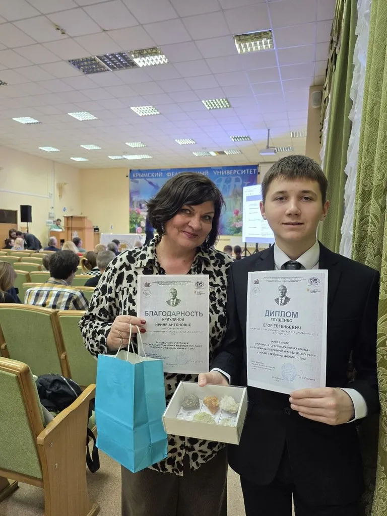 На собрании прошло награждение победителей и участников III Регионального конкурса краеведческих работ «О Крыме с любовью» имени В.Г. Ены, проводимого при поддержке Фонда президентских грантов. Среди награжденных есть и наши обучающиеся: Алексашина Александра, Бондарь Алена (научный руководитель Тихая Т.А.), Борисов Максим, Билык Валерий, Антошко Мария, Глущенко Егор (научный руководитель Криулина И.А.). С особой радостью хотим сообщить, что Глущенко Егор занял 2 место в номинации «В горах и на равнинах Крыма» с работой «Памятник природы - гора Кошка». Молодцы ребята!
